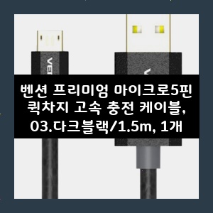 벤션 프리미엄 마이크로5핀 퀵차지 고속 충전 케이블, 03.다크블랙/1.5m, 1개